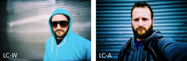 The show stopping new feature of the LC-W is that it has a wider lens than its predecessors. The LC-W has a 17mm lens whereas the good old LC-A, LC-A+ and LC-M (that’s right M! read more about that here) have 32mm lenses, the difference is huge. Having a wide lens allows you to capture a much wider field of view, with the added bonus that wide lenses capture images with a wider depth of field, which means that more will be in focus. Below are two arms length self portraits one shot on the 17mm LC-W and one on the regular 32mm LC-A.