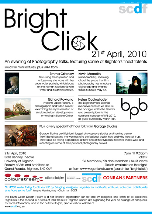 The Event will be at the Sallis Benney Theatre at University of Brighton on the 21st April at 7pm. Get your tickets by going to www.wegottickets.com and searching for “brightclick”