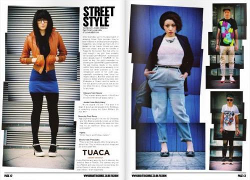 The new Source Magazine is out (has been for a while) with my new trend spotting pictures. There’s a small change as Tuaca are now sponsoring street style. If you are picked as the featured person you get a free bottle of Tuaca! Keep an eye on my flickr stream and montage portrait set over the next few days as I will be uploading my new trend spotting pics.